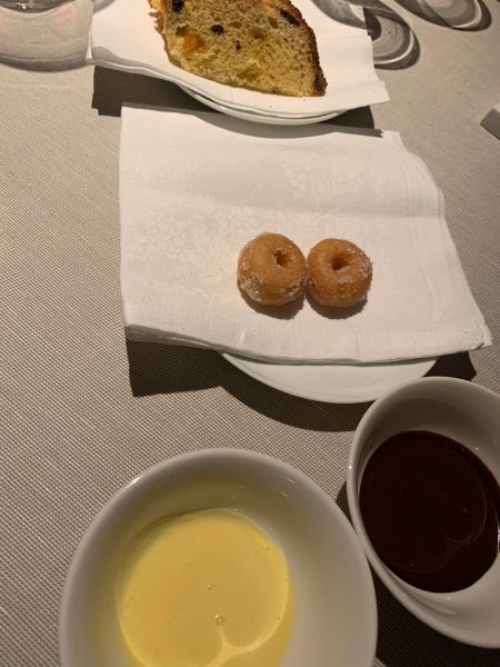 Chiaramente la macchina da corsa non va da nessuna senza le giuste componenti: l’esperienza da Imago è foraggiata una delle migliori brigate di sala del belpaese: efficientissima e sorridente, molto attenta ma mai invadente. Bravissimi il maitre Marco Amato e il e sommelier Alessio Bricoli, quest’ultimo custode di una carta monumentale, che spazia da Petrus, Romanee Conti e Monfortino a chicche regionali e non ad un prezzo onesto per il contesto. Ma si beve molto bene anche al calice: io mi sono lasciato coinvolgere in un gioco delle carte – e qui torna in mente l’esperienza con i bigliettini di Local a Venezia – in cui il cliente può scegliere tra due proposte d’abbinamento diverse per alcuni piatti (per esempio un Riesling tedesco o italiano per gli scampi, una muffa nobile o un ice wine per il dessert).