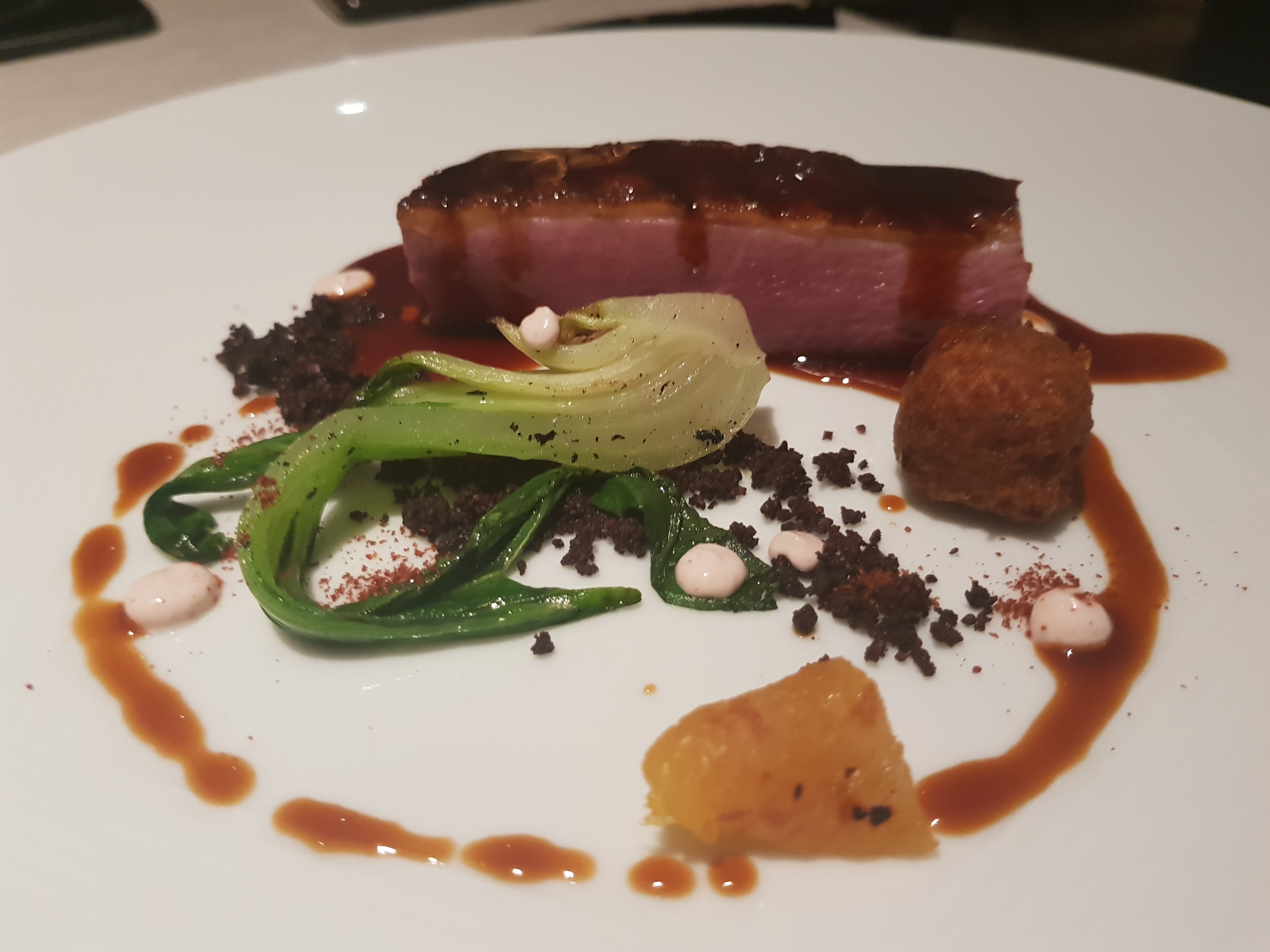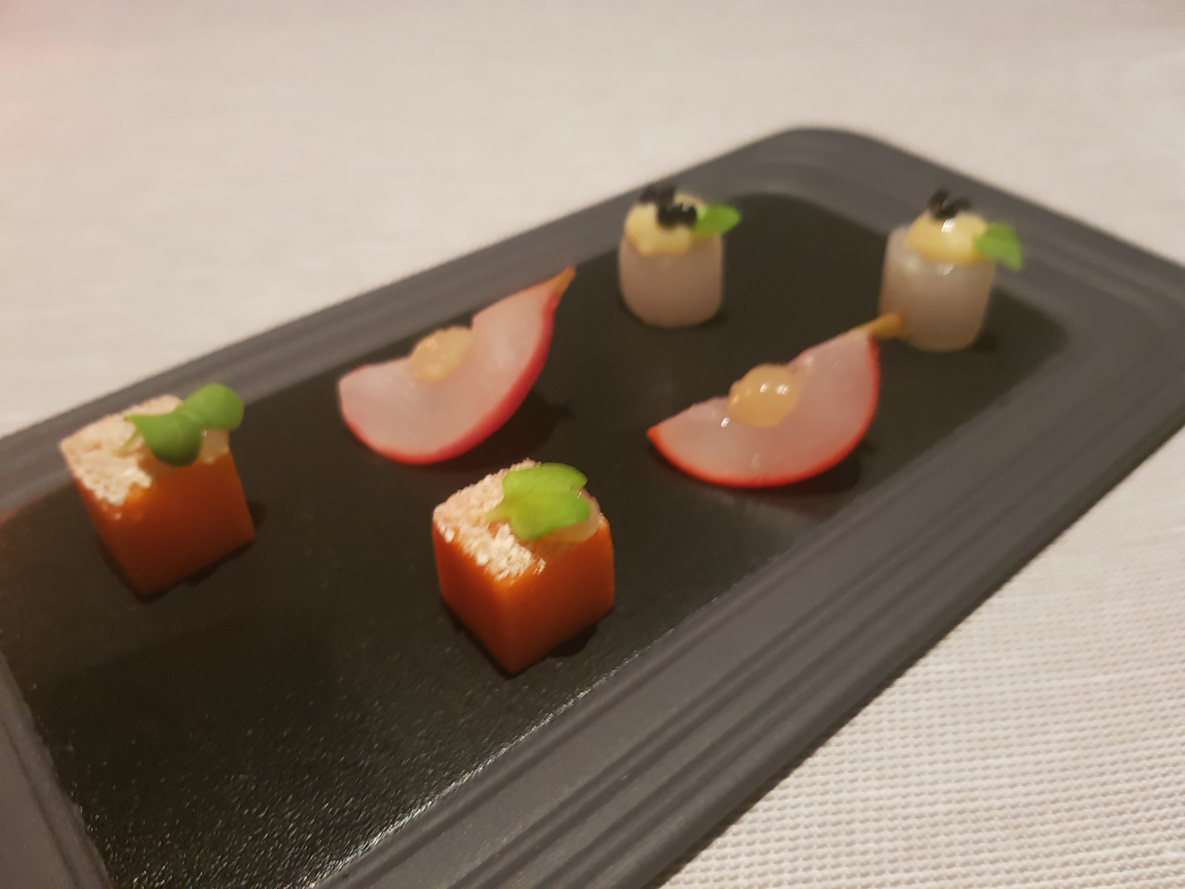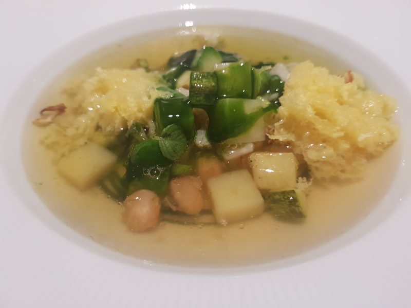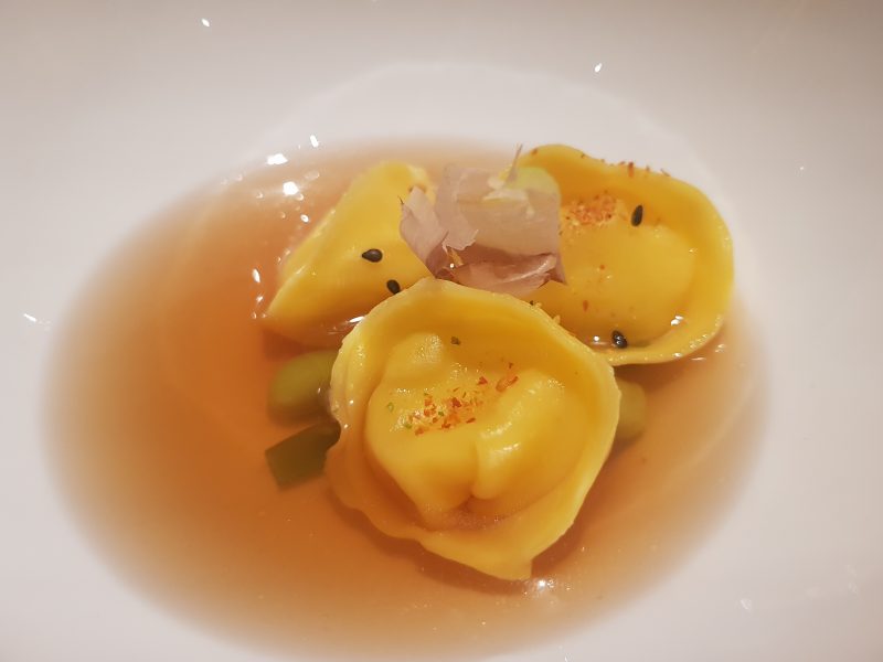 Interessanti i giochi di consistenza e sapore fatti con il parmigiano reggiano, formaggio difficilissimo da utilizzare fuori dalle solite rotte. Bravura nel donare lunghezza e umami anche ad elementi vegetali restituendo in bocca il piacere della complessità anche a chi non ama la carne. Si nota anche in questo la sua sensibilità verso i vegetariani, non basta proporre alternative, è bello vedere piatti studiati e completi in gusto e lunghezza, adatti a tutti.