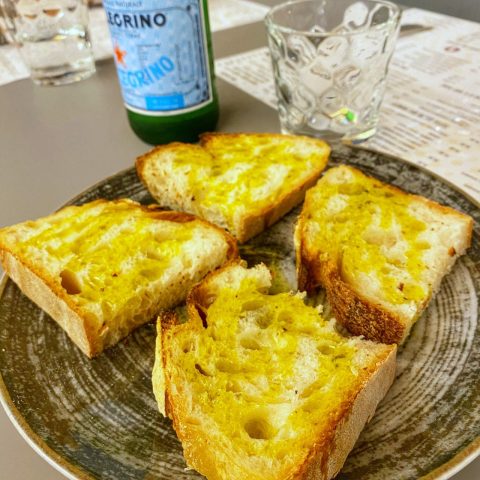 Chi ama impastare non può non cimentarsi nel pane e non si fa eccezione qui. Primo assaggio allora, semplice e ben fatto: pane e olio. In carta poi anche vari tipi di arrosticini, siamo in Abruzzo, non dimentichiamolo.