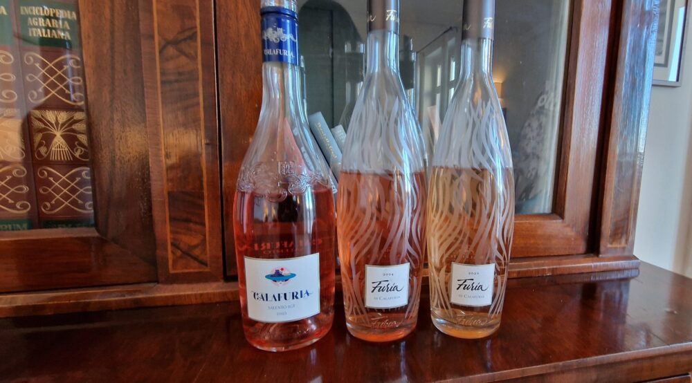 Furia di Calafuria si attesta intorno alle 20.000 bottiglie, confermandosi come una lettura precisa, enon scontata, del rosato pugliese.