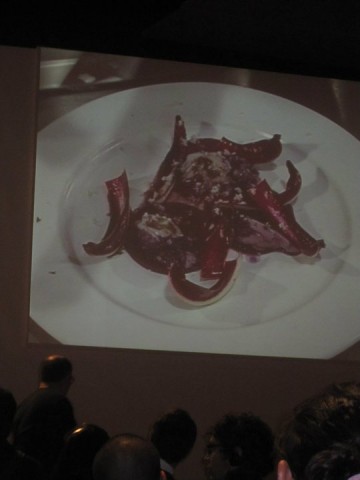 L’ultimo show della prima giornata è dedicato al francese che fa incazzare tutti gli altri chef e mostri sacri della critica francese e non. Si perché Inaki, di origine basca, si è piazzato all’ undicesimo posto tra i primo 50 chef al mondo, tutti hanno gridato allo scandalo. Lui dice di non capire perchè ci sia tutta questa attenzione intorno a sè. Penso si possa credergli, a meno che non ci si trovi di fronte ad un consumato animale da palcoscenico.