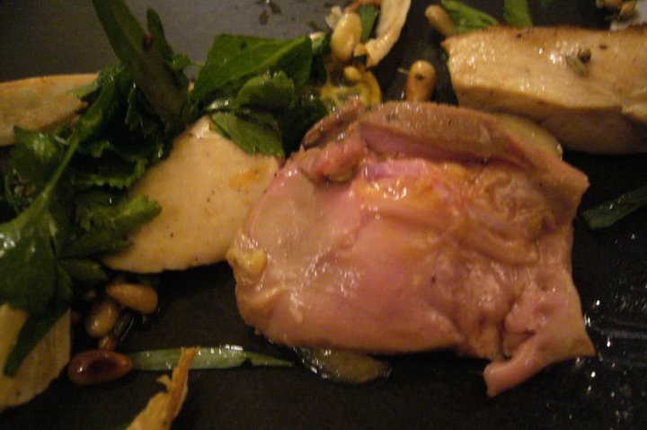 Interessante, ma in senso negativo, il passaggio sul piatto diciamo così, importante della serata. Io e un altro commensale saltiamo l ‘interpretazione dell’AGNELLO DI LATTE, SCORZONERA, KUMQUATS (non spaventatevi , si tratta di banali mandarini cinesi) e chiediamo un’ altra cosa.. Ci viene proposto un pollo. Pare interessante.