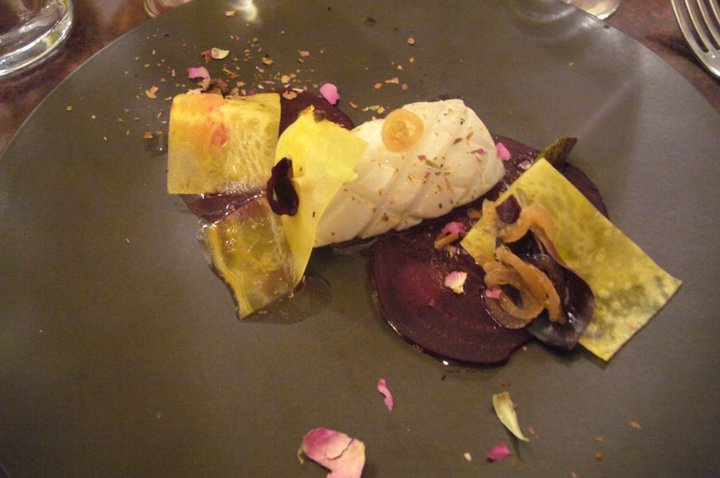 I piatti del menu: ENCORNET, BETTERAVES, ROSE, dove inizia un percorso minimalista. Buona la materia prima, lo dico qui e vale per tutto il pasto, del tutto inutili le rape rosse per non dire dei petali di rose, buttati lì per abbellire un piatto ma senza significato gustativo.