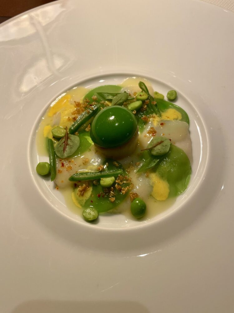 L’ingresso è fresco, freschissimo, sia quello vegetale che quello con la ricciola che si presta sempre molto bene a queste preparazioni.