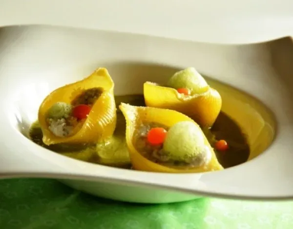 le strade della mozzarella Maccheroni gratinati su crema di bufala, fave e pancetta | Contest Le Strade della Mozzarella Fave, Pancetta