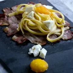 le strade della mozzarella Fresine risottate con acqua di mozzarella, con tuorlo marinato su griglia di pancetta affumicata | Contest Le Strade della Mozzarella 18 Marzo 2014 0 commenti