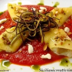 le strade della mozzarella, primi Paccheri ripieni di mousse di carciofi, scampi e mozzarella di bufala su crema di Parmigiano | Contest Le Strade della Mozzarella 20 Marzo 2013 0 commenti
