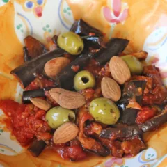 cucina regionale, cucina vegetale La caponata di melanzane alla siciliana aceto, cipolla, Melanzane, pinoli, zucchero