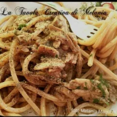 Una mia ricetta. Spaghettini con crema di ceci, nduja e pecorino 'Nduja, aceto, ceci, olio e aglio, percorino