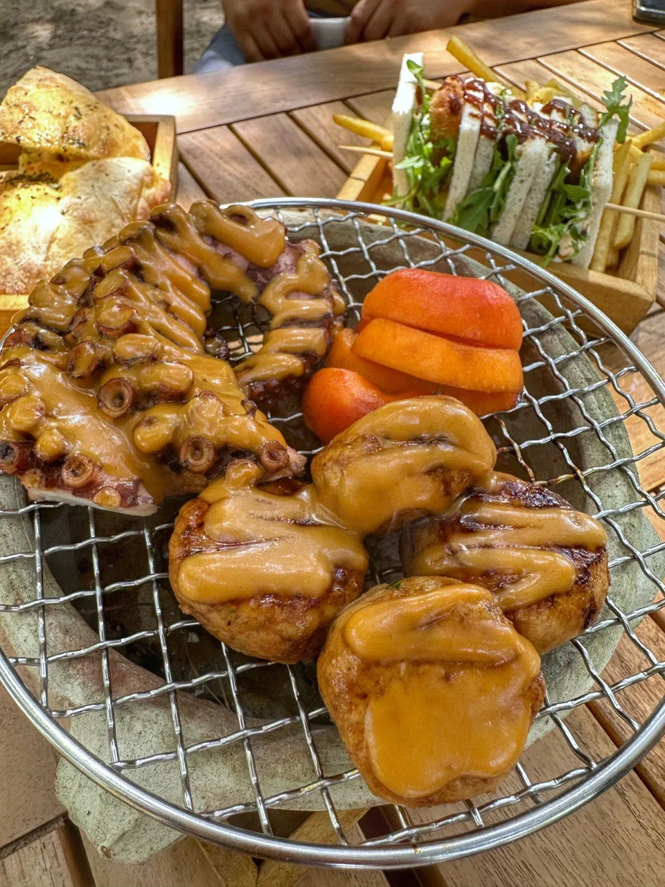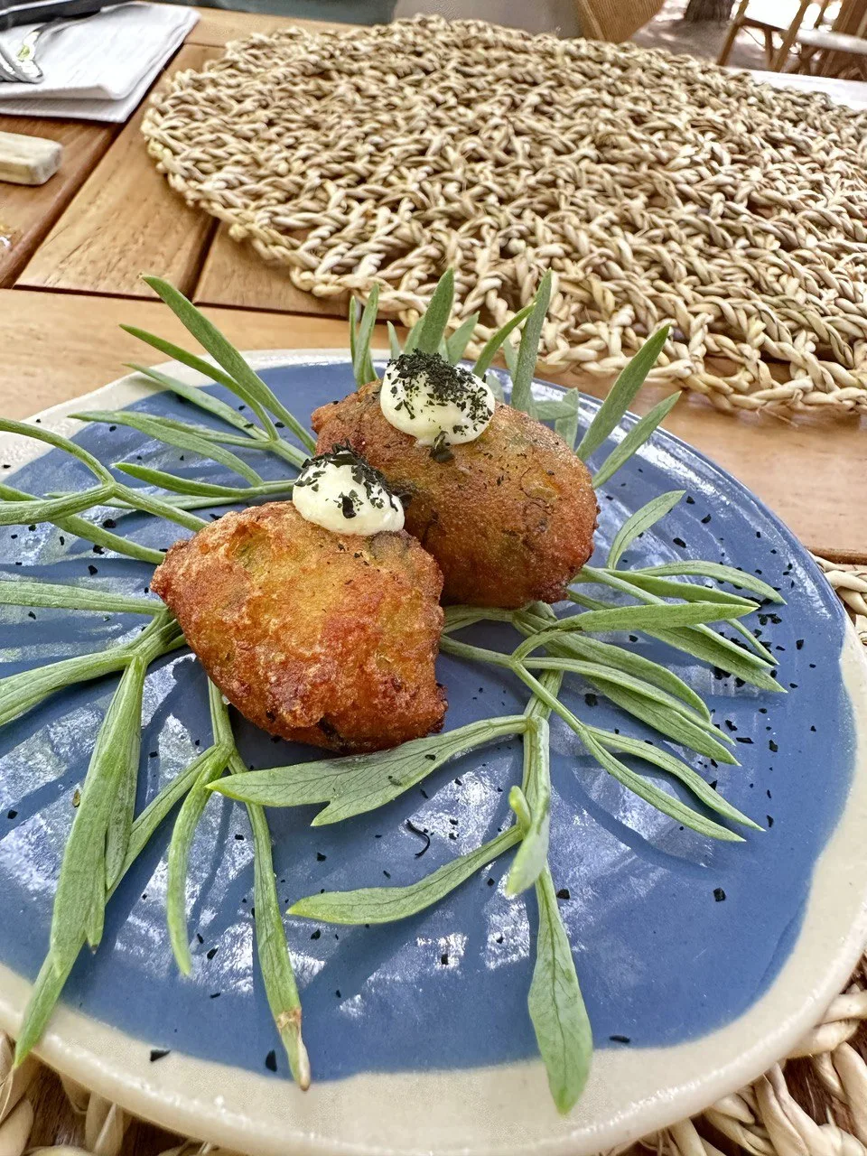 La cucina è guidata dallo che Angelo Pumilia che firma un menù interessante e non scontato. Piatti semplici ma costruiti con intelligenza, freschi e golosi. Per le verdure si ricorre all’orto della Foresteria, il pesce è locale e la mano guarda al Giappone. Cottura perfetta per il polpo servito sul Kamado siciliano. Una griglia da tavolo tipica giapponese, in questo caso costruita con materiali siciliani. La parte finale della cottura avviene al tavolo per una piacevole interazione degli ospiti che apprezzeranno la nota affumicata della preparazione. Delicatissime anche le polpette di gambero con salsa bbq alle albicocche.