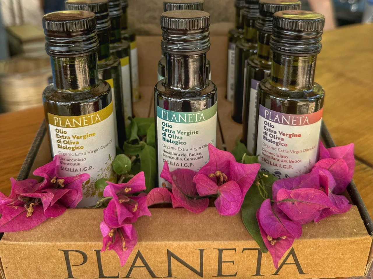 Il benvenuto è sempre con una rinfrescante caraffa di acqua con limone ed erbe aromatiche, poi ampio spazio ai vini, ovviamente Planeta ma anche Champagne e varie etichette di vini prodotti sulle isole del mediterraneo.