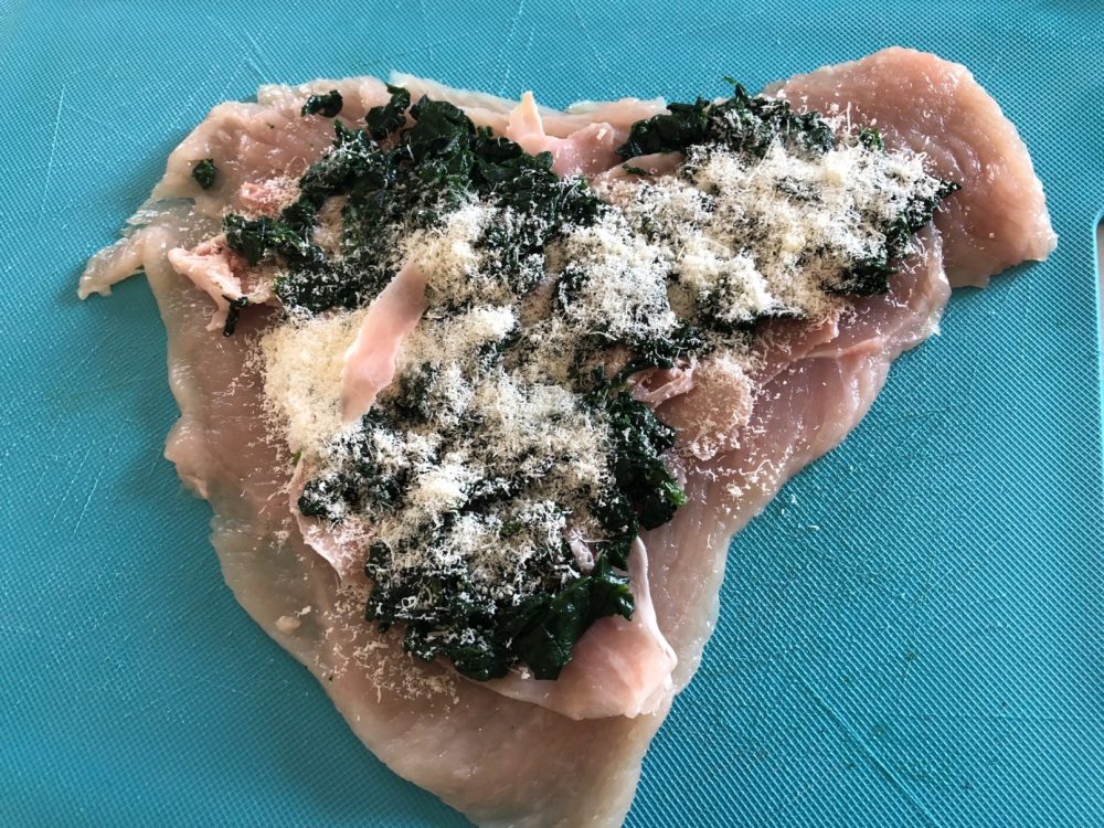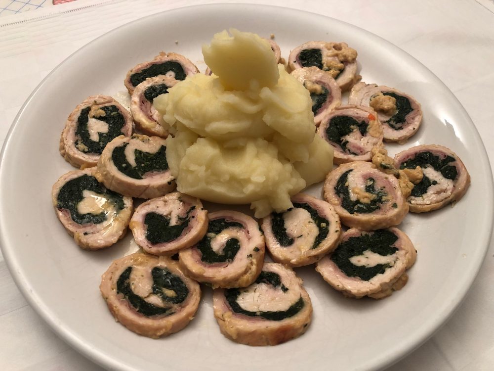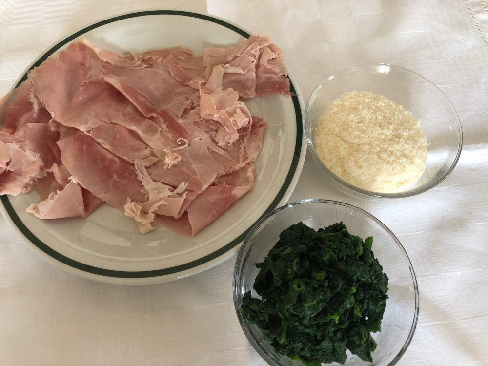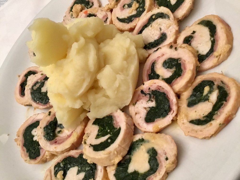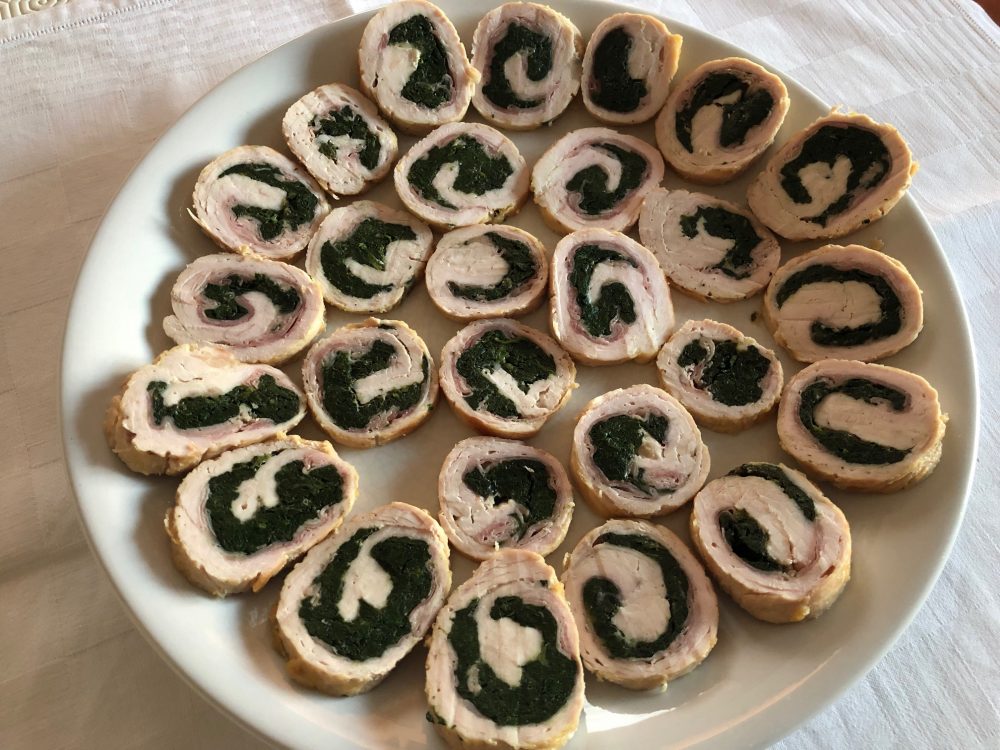 Involtini di tacchino cotti nel latte, con prosciutto cotto, parmigiano e spinaci