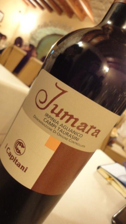 All’irpinia aglianico Campi Taurasini Jumara 2006 de I Capitani il compito di accompagnare questo gustosissimo primo. L’amarena ed i sentori di legno (liquirizia su tutti), il gusto morbido e non irruente del vino bene si contrappongono ai sapori del piatto, anche se tra i due è quest’ultimo ad averne la meglio in fatto di persistenza gustativa.