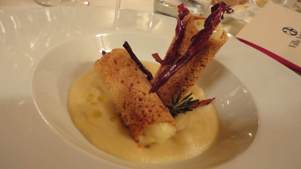 In abbinamento lo spumante metodo classico Ripa Bassa di Villa Raiano, che con la sua intensità e particolare freschezza, forse fin troppa, sfidava il piatto di Mirko mettendo il luce il gioco di equilibri del piatto. Da sottolineare la finezza del perlage, anche se non molto persistente.