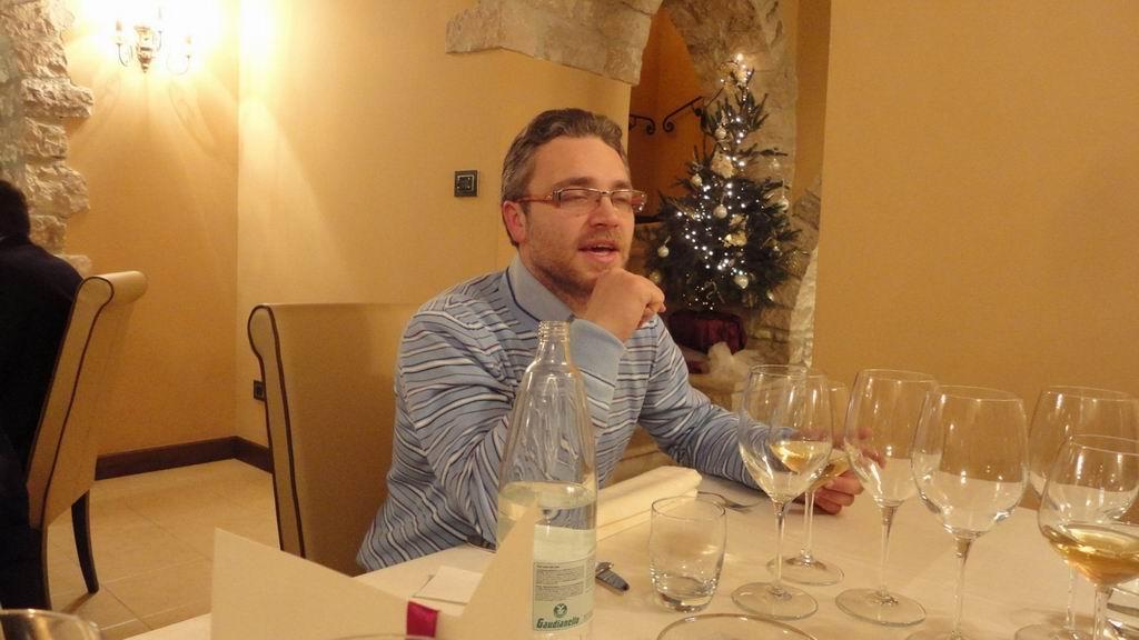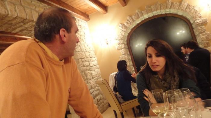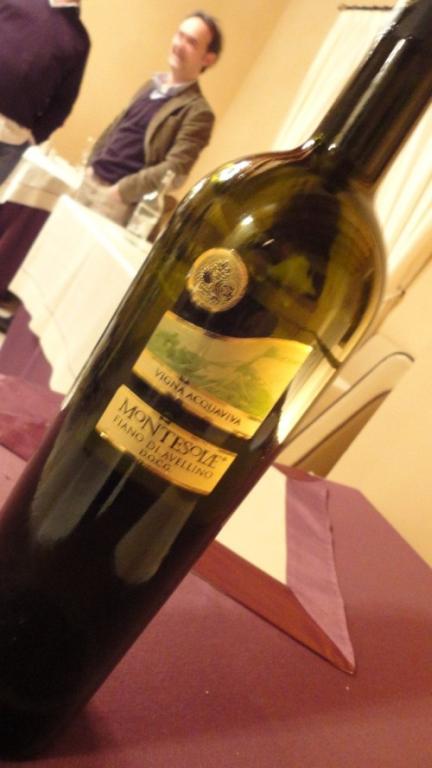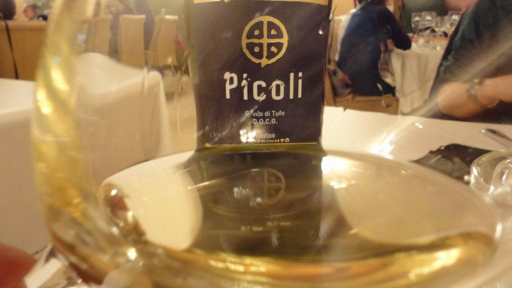 Nel gioco di abbinamenti ricercati, non a caso (per stessa ammissione del “general manager” Balzano) ad un rosso segue un bianco, il Greco di Tufo crù Picoli 2011 delle Cantine Bambinuto, che in quanto a struttura e corpo gareggia a testa alta con il cugino venuto prima. Un vino solido, nel senso figurato e letterale, che al naso riporta nettamente alla tipica mineralità del Greco di Tufo, alla quale si accompagnano note di fiori gialli e frutta secca; in bocca vivace fresco e persistente. L’abbinamento cibo-vino più riuscito a mio avviso, dove i pesi di contrapposizione si sono perfettamente equilibrati.