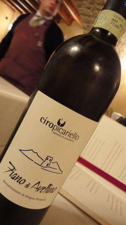 Ad accompagnare a braccetto il secondo piatto ci ha pensato il Fiano di Avellino 2011 di Ciro Picariello. E’ bastato attendere pochi minuti dalla mescita per apprezzarne appieno l’articolazione di sentori: albicocca, nocciola, fiori bianchi appassiti e polvere da sparo. Un vino rotondo e persistente che bene si contrappone alla sapidità e all’aromaticità del piatto.