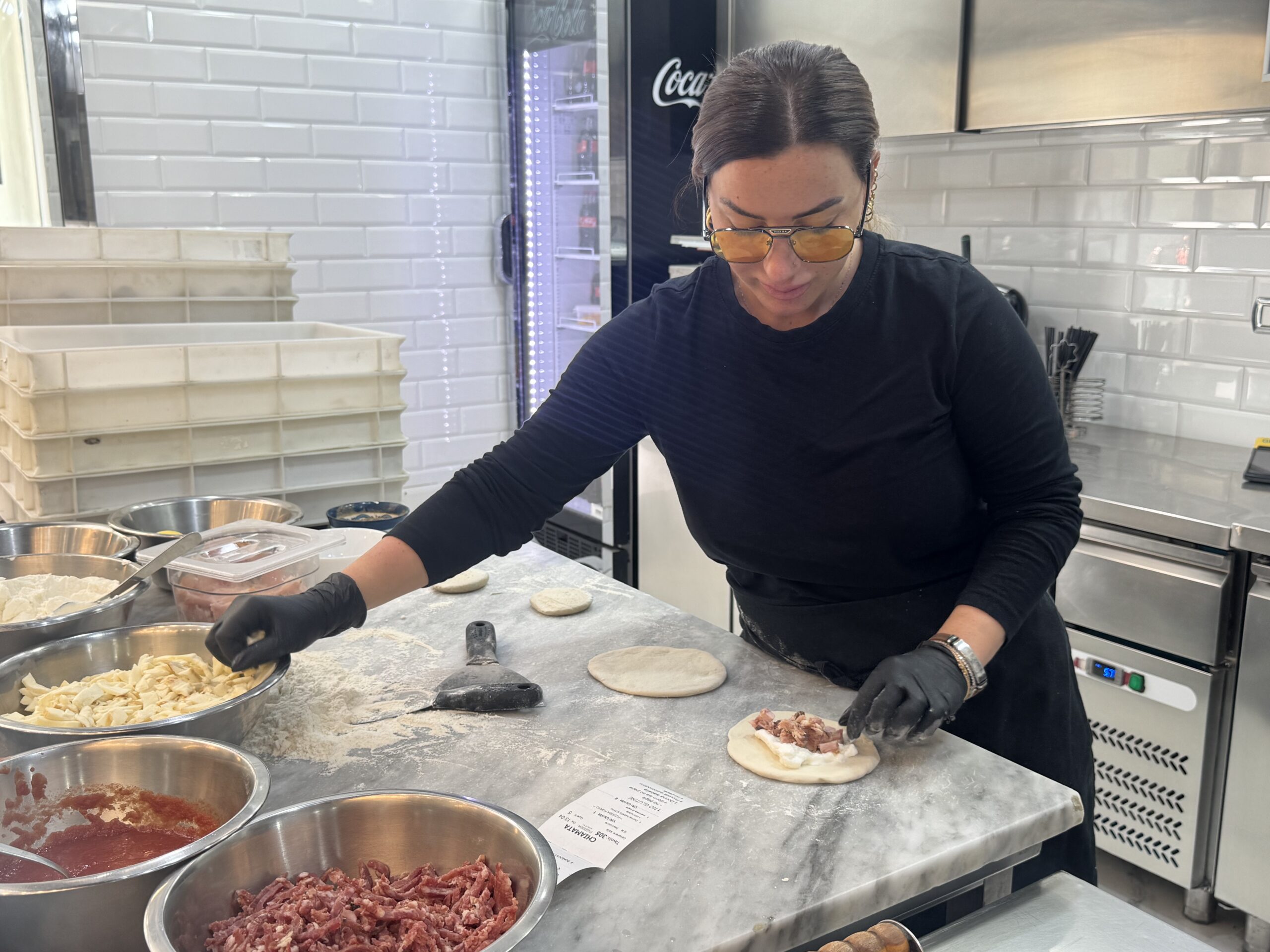 Sono anche i suoi occhi a raccontarmi del suo lavoro di pizzaiola, ci leggo forza e consapevolezza e la sua pizza fritta ha davvero qualcosa di cui dover parlare. Lei la descrive come se fosse una sua figlia, ed è uno spettacolo vederla all’opera: sembrano una danza i suoi gesti nel farcirla, ma soprattutto nel friggerla. Poi la tira fuori e lo spettacolo è assicurato, “Mo non ci resta che bucare il pallone”. La pizza fritta di Isabella è ariosa, leggera, digeribile, “l’olio non è l’ingrediente ma il conduttore” e quello che esce fuori è una pizza fritta perfettamente sferica, dovuta al processo di frittura ma anche alla lievitazione.