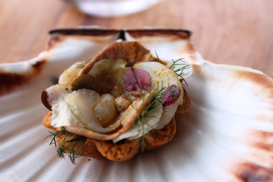 La prima cosa che mi ha colpito di questa cucina sono stati i colori. I piatti erano davvero belli, non artefatti, ma mettevano in risalti i colori della natura, sprigionavano energia. I primi assaggi sono stati fulminanti, una “full immersion” nella cultura gastronomica messicana, tra avocado, chorizo e spezie messicane. Il Cachi “nixtamalizado”, prosciutto di palamita e stracciatella, è stato il piatto del viaggio per me, perchè quando trovi un cuoco che ti fa mangiare qualcosa che non ti piace particolarmente, quello è il tuo cuoco. Non amo molto l’abbinamento del pesce con il formaggio, lo trovo quasi sempre ridondante, invece in questo caso l’ho trovato una soluzione geniale. Al “prosciutto” di palamita, sapido, la stracciatella, dolce e vellutata, faceva da contraltare il cachi “nixtamalizado”, amaro, quasi astringente, con una consistenza compatta, il tutto completato da una forte nota vegetale di erbe e fiori. Tre bocconi, per un piatto che mi ha davvero colpito molto.