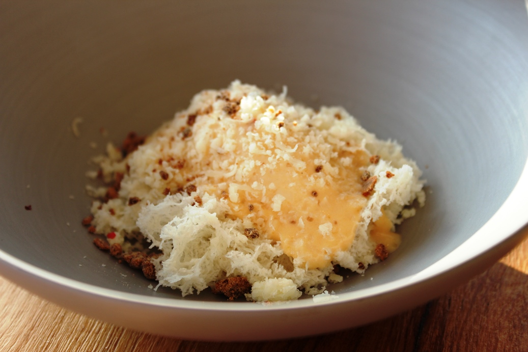 - Cachi “nixtamalizado”, prosciutto di palamita e stracciatella