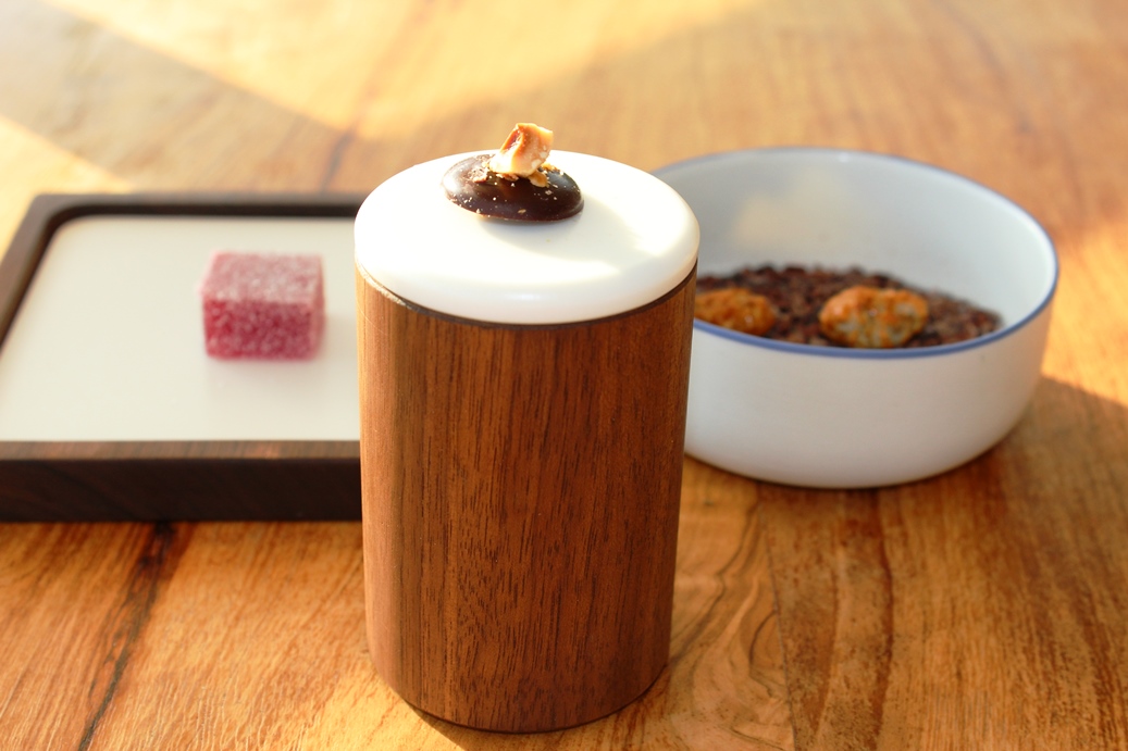 Chiusura dolce, quasi priva di zuccheri, proprio come piace a me, in cui il “fine pasto” non appesantisce ulteriormente la digestione, con un omaggio alla Francia che lo ospita, miscelando la mela cotogna e il comtè.