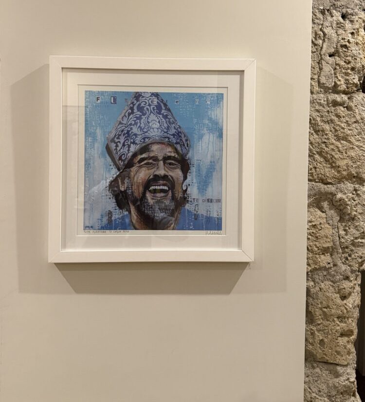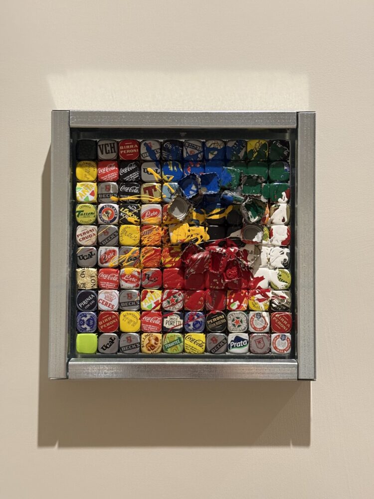 Ci sono i San Gennaro pop di Roxy in the Box, le sagome dorate di Alessandro Flaminio, i volti obliqui in cartapesta di Pasquale Manzo, i collage di tappi metallici di Luigi Masecchia. Materiali poveri, simboli religiosi, oggetti comuni diventano icone, frammenti di memoria trasformati in presenza.