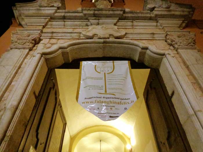 Oggi sono tutti in festa, si percepisce dal fermento, dai primi banchi espositivi delle Aziende Vitivinicole sotto i portici, dalla sequenza dei manifesti e colophon che, ritmicamente, ricordano la rassegna sul noto vino-vitigno campano, ogni angolo vuole comunicare la qualità della falanghina, “ingredienti importanti” sono la cultura e l’emozione.