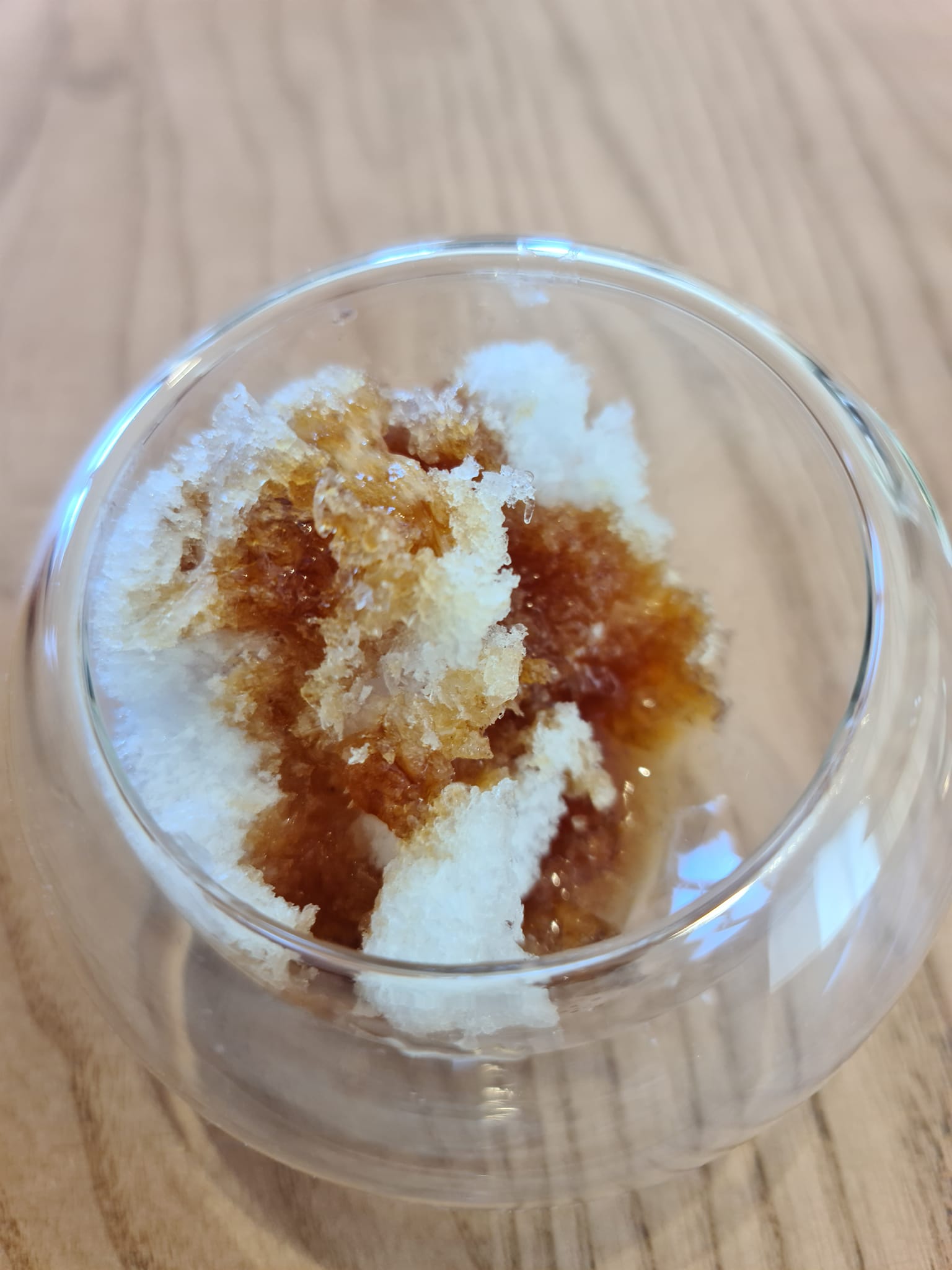 L’agnello e shitake è il piatto del viaggio. La parte grassa dell’agnello è croccante, la carne è quasi cruda, il fondo di accompagnamento è perfetto e da solo fa piatto, le due salsine in abbinamento da centellinare perfette.
