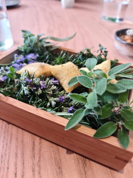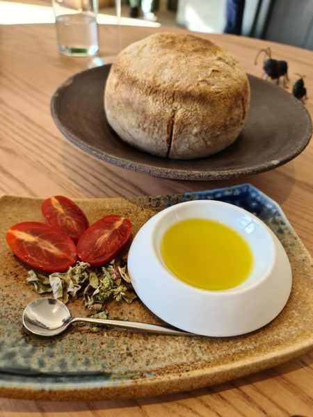 Un sabato di gennaio, ora di pranzo, Valle Telesina. Un piacevole raggio di sole illumina la sala da pranzo. Un casale antico, sapientemente ristrutturato, la vigna, l’orto e tutto quanto rimanda ad una civiltà contadina, spina dorsale dell’economia del Sannio. L’interno è un mix del passato, con le pietre a vista, e di essenziali linee futuristiche con tavolo senza tovaglia. Il Kresios di Giuseppe Iannotti è progetto molto complesso: ristorante, shop, enoteca, camere, il food delivery con 8pus (premiato da 50 Top Italy tra i format innovativi nella guida 2022).