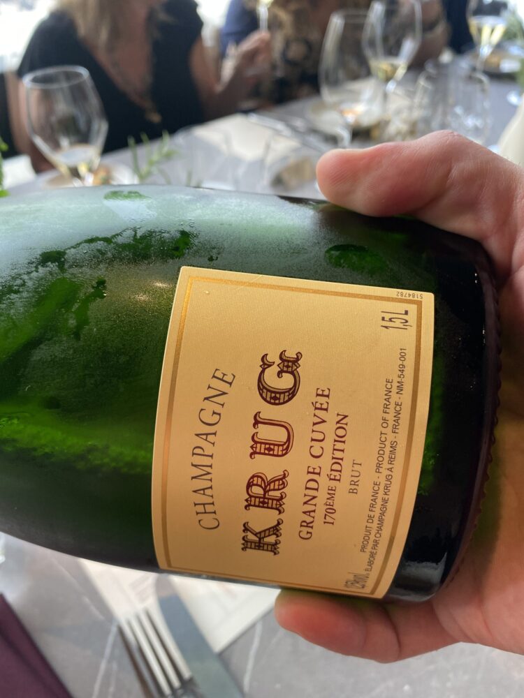Nel corso del pranzo è stato servita in Magnum anche l’edizione 170, assemblaggio di 195 vini di cui la prevalente è la 2014 e la più vecchia la 1998. In questo magnifico vino si appalesano le note di frutta gialla matura (pesca e albicocca) e una speziatura che vira fino all’incenso. Un vino che fa capire perché l’edizione recente ha necessità di qualche tempo di affinamento in bottiglia.