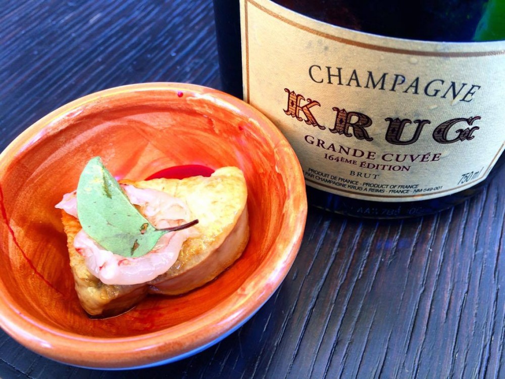 Krug – Campania. Foie Gras di Rana Pescatrice, Gambero Rosso e Coulis Di Frutti Rossi