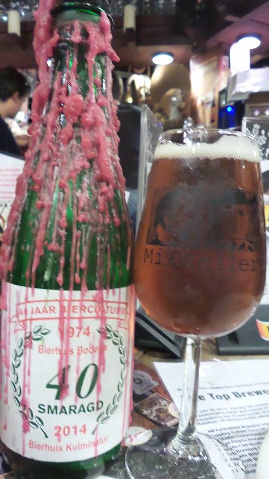 Il mio vicino di tavolo è inglese e mi dice che non posso non provare la 40 Smaragd che Mikkeller, famoso produttore danese, ha realizzato proprio per Dirk e Leen nel 1974, data di apertura del Kulminator: è una barley wine, affinata dodici mesi in barrique di Chateau d’Yquem con ben 16,5% vol in alcool e, a dire il vero, non mi piace, ha troppa struttura, i profumi di cherry e di legno sono predominanti e non ha certo l’eleganza delle birre bevute sino ad ora. Ma questo ovviamente me lo sono tenuta per me avendo notato che molti ospiti bevevano con gusto la birra prodotta per Dirk e Leen.
