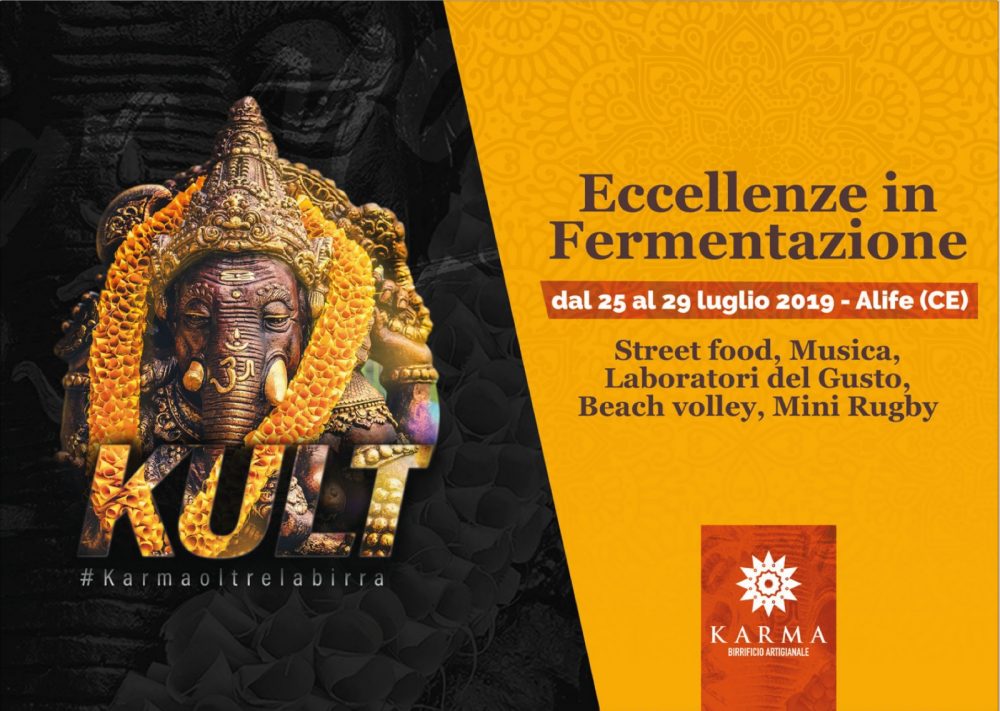 Il birrificio Karma organizza la quinta edizione di Kult, festa della birra artigianale che si tiene all’interno del birrificio campano, dal 25 al 29 luglio. La birra è sicuramente la protagonista della manifestazione, ma non da meno è l’area food, con la partecipazione di molti ristoratori della regione, alcuni dei quali inseriti nel progetto dell’Alleanza di Slow Food dei Cuochi e Pizzaioli. Durante le cinque giornate si alterneranno diversi chef che accompagneranno, con le loro ricette, le birre presenti. La regina dell’evento è la birra, con tante etichette presenti del birrificio di casa: Marilyn, Kumari, Karisma, Amber Doll, Carminia, Sumera, de Rinaldi, Kult19 (double ipa), Sumera cherry, Nigeria, Radica e Saison. A completare l’offerta, è disponibile una selezione di birre campane ospiti: Blanche di Birrificio Incanto, Ligia di Birrificio Sorrento, Match di Bonavena, Mostò Falanghina di Bella ‘Mbriana, Smoky Eye di Lievito & Nuvole, Top Rock di Aeffe, Apache (apa con fiori di canapa) dell’azienda agricola Seminile, Granum di Serrocroce e l’Imperial Ipa di SpillAle Pub. Ricco anche il programma culturale, con una serie di laboratori di degustazione e abbinamenti tra cibo e birra: il giovedì si parlerà della riconoscibilità delle materie prime nella degustazione della birra, il venerdì ci sarà un laboratorio con una selezione di formaggi, il sabato e la domenica l’immancabile appuntamento con i sigari toscani e il lunedì un laboratorio con gli abbinamenti della birra nella ristorazione. L’ultimo giorno sono previste attività dedicate agli homebrewer, tra cui una cotta pubblica in collaborazione con Emporio Brewing. La musica accompagnerà tutte le serate della manifestazione, con diversi gruppi che si alterneranno sul palco. Novità di quest’anno sono i due tornei di Beach Volley e Rugby.