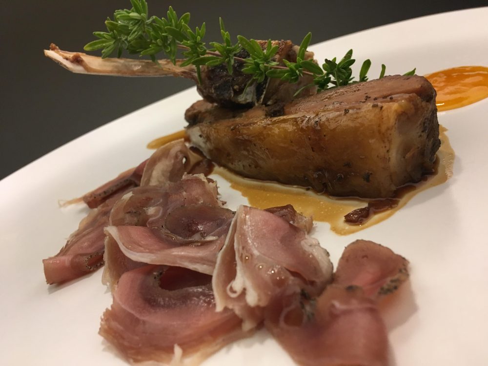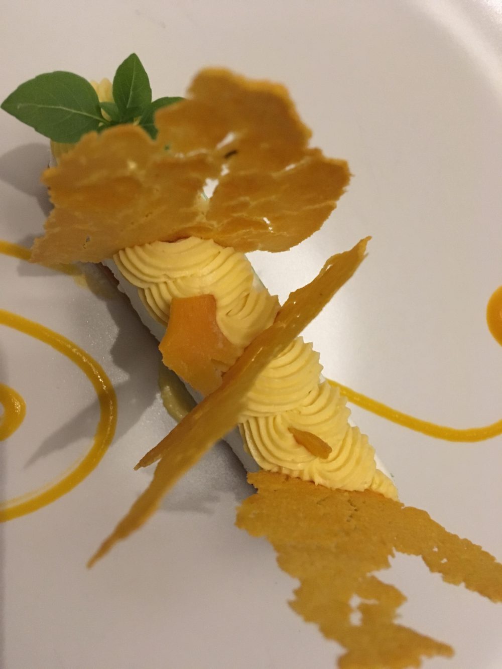 Ho apprezzato molto il gioco di consistenze e di sapori. La dolcezza della frutta si sposa divinamente con la sapidità della carne. La spuma di formaggio non sovrasta ma accompagna il tutto creando un bel connubio.