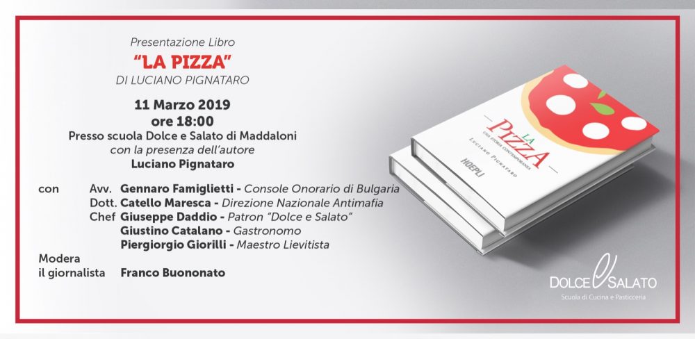 Con l’autore, Luciano Pignataro, dialogheranno: Gennaro Famiglietti, Console Onorario di Bulgaria e presidente dell’Istituto di Cultura Meridionale; Catello Maresca, magistrato alla Direzione Nazionale Antimafia e cofondatore dell’Associazione Arte e Mestiere che si occupa di tramandare antichi mestieri della tradizione partenopea e formare al lavoro i ragazzi, in particolare quelli provenienti da famiglie in condizioni di disagio socio-economico; il gastronomo campano Giustino Catalano e il maestro lievitista di fama internazionale, Piergiorgio Giorilli che tratterà l’aspetto tecnico-evolutivo del mondo pizza. A dare il benvenuto, Giuseppe Daddio direttore di Dolce & Salato e a coordinare gli interventi, il giornalista Franco Buononato.