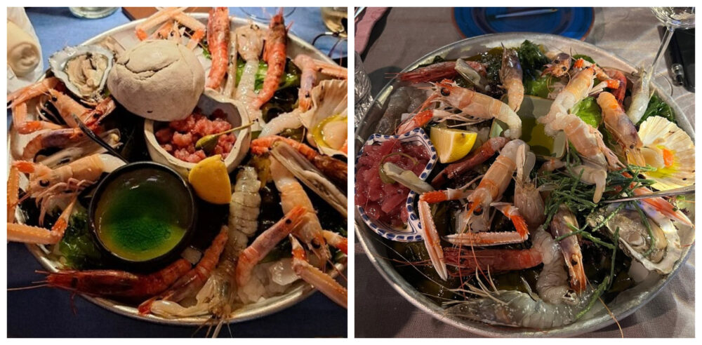 Qui non c’è spazio per compromessi: la qualità è dichiarata, esposta, quasi ostentata nella sua purezza. Il menu è un racconto dinamico, costruito sul pescato quotidiano e su una visione gastronomica che rifugge le rigidità. I secondi piatti raccontano con chiarezza l’identità del locale. La grigliata mista di mare è un esercizio di equilibrio: sogliola, orata, seppia, tonno, mazzancolle e canestrelli convivono in una cottura precisa, accompagnati da verdure grigliate e polenta che richiamano la tradizione veneta senza appesantirla.