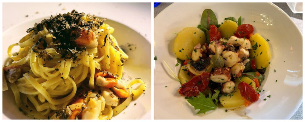 È da qui che nasce l’identità del ristorante: autentica, senza sovrastrutture, capace di sorprendere senza mai forzare. Qui il mare è protagonista assoluto, ma non è mai urlato. La mano in cucina è quella di Andrea, precisa e istintiva, capace di lavorare una materia prima eccellente senza tradirne la natura. Il risultato è una cucina che si muove su un equilibrio sottile: tecnica sì, ma sempre al servizio del gusto.