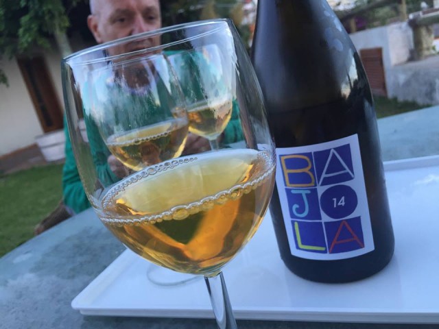 Il terzo elemento di rottura è proprio il processo di vinificazione: in pratica si ripropone l’antico palmento dove l’uva appena diraspata viene messa in queste vasche di cemento sotterranea temperatira non controllata. Il mosto fermenta sulle fecce per almeno un paio di settimane e viene svinato quando il cappello cede. Un processo elementare, senza solfiti aggiunti, che regala un vino frutta, di mela cotta, note di macchie mediterranee, ampio in bocca, lungo e fresco. Soprattutto in questa versione 2015, ottima annata a quanto pare dai primi assaggi.