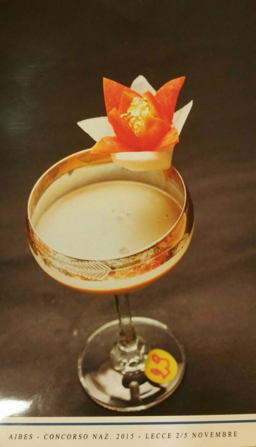 Ci sono donne che hanno la marcia in più. È questo sicuramente il caso di Rita Russo, un’apprezzata bar lady che consegue un successo dietro l’altro. L’ultimo in ordine di tempo è quello riscosso al 66° Convegno nazionale Aibes di Lecce. Primo posto per il suo after drink al cioccolato, nocciola, rum, caffè che rimanda un gusto di gianduia decorato con un fiore di daikon su cui è sovrapposto un fiore di peperoncino scolpito con una spolverata di oro alimentare.