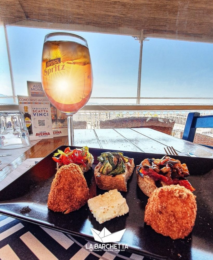 “Prediligiamo prodotti campani, ma andiamo anche fuori Regione per le nostre pizze” racconta Pasquale Pappalardo, il giovane proprietario della Barchetta. “La nostra è una continua ricerca del punto di equilibrio, anche tra pizze e ristorazione, di mare e di terra, divisa com’è tra Golfo e Vesuvio”. Del Vesuvio non manca il suo pomodorino del piennolo al forno, presente sulla più fantasiosa pizza Spaccatella, assieme alle gustose chips di melanzane. Creativa come la Barchetta, ripiena di emmenthal e fiordilatte, ricoperta di rucola, crudo e pomodorini. Simpatica anche per un aperitivo, momento a cui Pasquale punta.