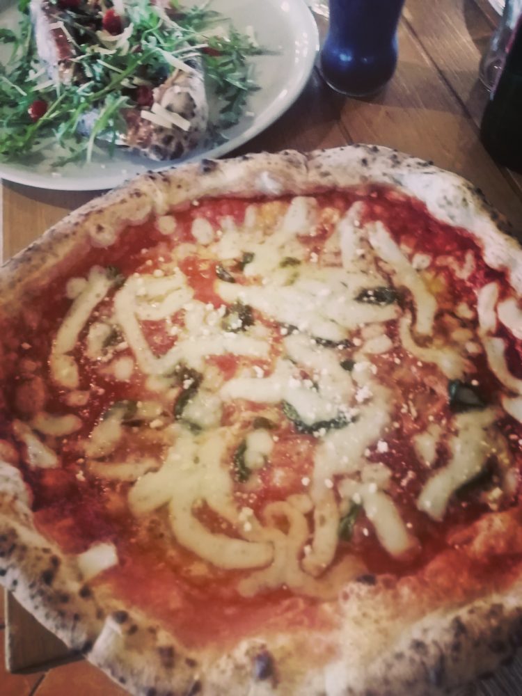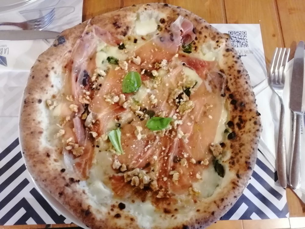 Noi abbiamo assaggiato la Margherita DOP, con prodotti rigorosamente locali come il pomodoro San Marzano DOP e il fior di latte di Agerola, ma anche la San Daniele con noci e prosciutto del Friuli.