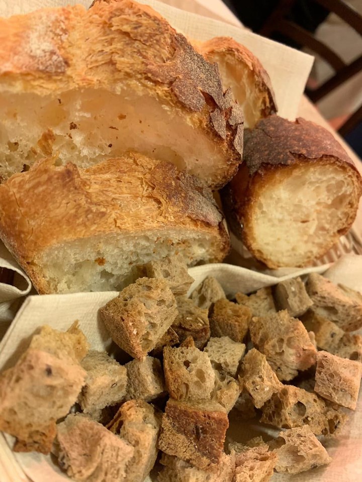 Il cestino del pane è composto con il classico bianco e con dei piccoli crostini al finocchietto.