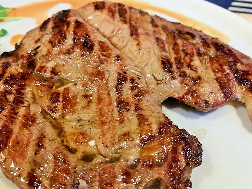 Continuando con la carne, il taglio scelto per la bistecca è quello di quarto, più grasso e saporito ma capace di appagare il palato di molti. Buona la cottura, considerando la tipologia e buona la qualità.