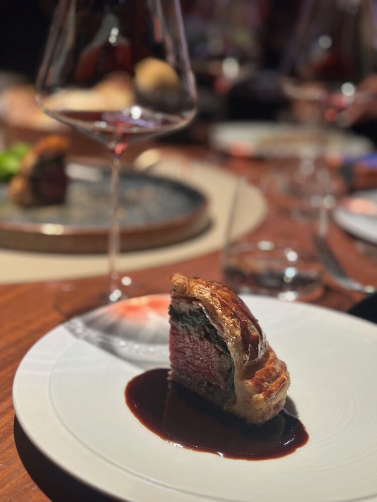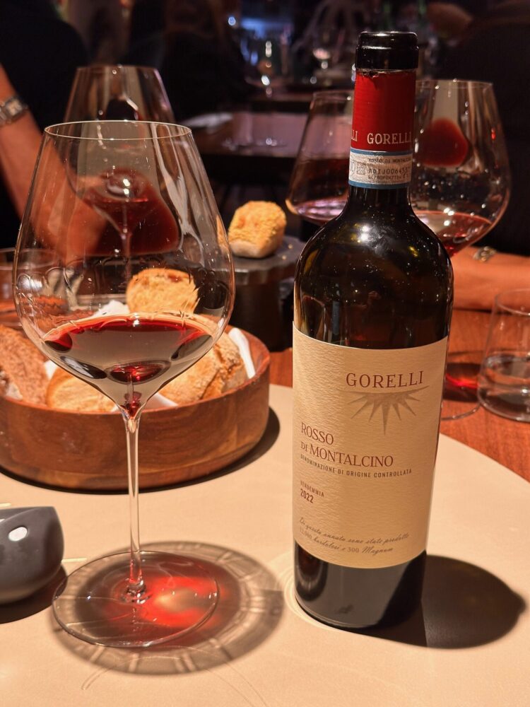 Il Rosso di Montalcino 2022 di Gorelli sostiene i secondi con un profilo caldo e ritmato, in equilibrio con il Wellington e con il carattere del Wagyu.