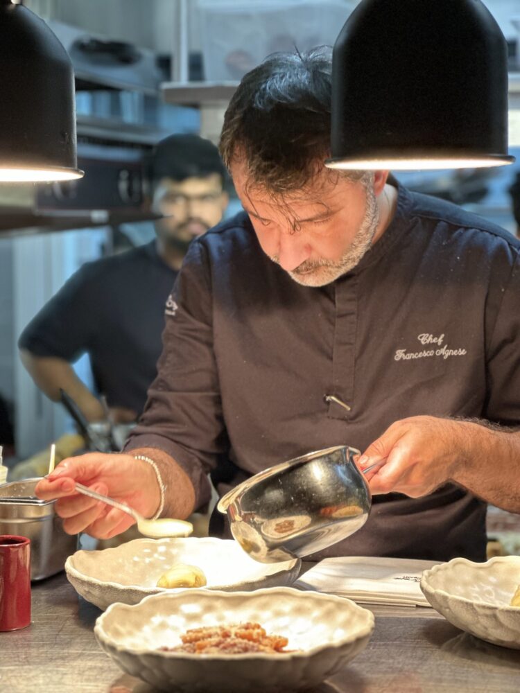 Quella di Francesco Agnese, ischitano, classe 1985, appartiene a questa seconda categoria, non si appoggia su una tradizione da custodire ma su un modo di leggere il mondo. È una cucina che non cerca un’identità unica, perché la sua identità è proprio l’apertura, l’abitudine al confronto, allo spostamento, alla contaminazione come gesto naturale.