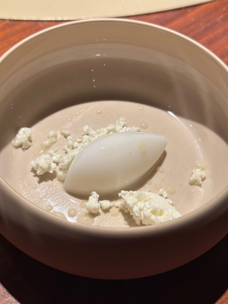 La degustazione riflette perfettamente la sua visione, piatti che non replicano la tradizione ma la attraversano con mano leggera, tecniche che arrivano da lontano ma che si integrano senza forzature, materie prime trattate con un rispetto quasi chirurgico.