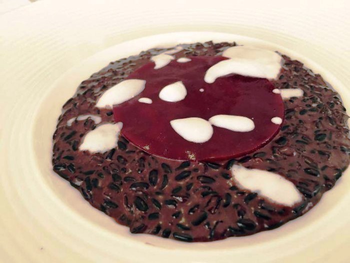 - Porta del Vaglio, riso di Sibari mantecato all’olio d’oliva con pecorino, melassa di fichi e noci tostate