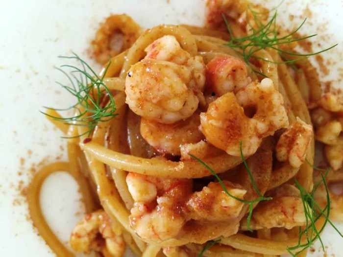 - San Domenico, chitarra di Forte con bisque di gamberi e gamberi