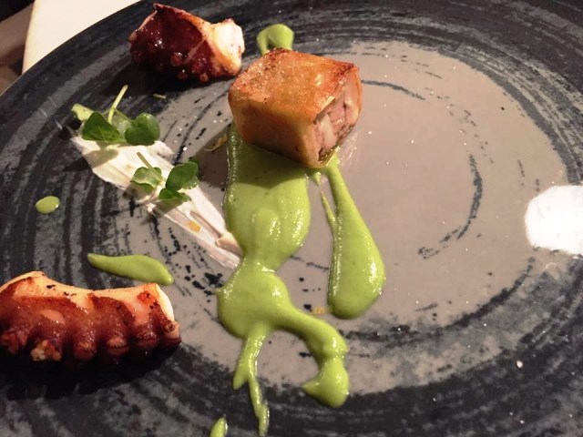 - Qafiz, polpo grigliato con testina di maiale, piselli