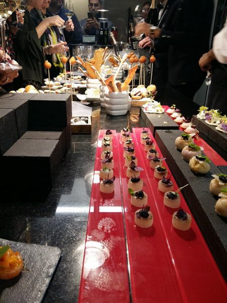 Bella l’idea di servire aperitivo e piccola pasticceria direttamente in cucina creando così un momento di contatto tra cuochi e ospiti. Entrare, assaggiare i piccoli deliziosi bocconi scambiando battute con gli chef e con le loro brigate diventa un modo per avvicinarsi sempre più ad una ristorazione d’autore. Stimolare la curiosità, aprire finestre su cose nuove. Perchè il fine di questo tipo di serate, a mio parere, è proprio questo. Creare occasioni per appassionare aprendo possibilità di nuove conoscenze sia palatali che relazionali.