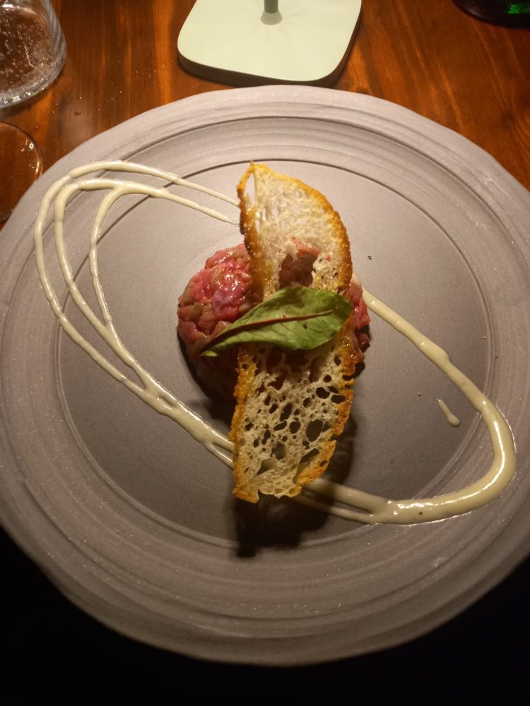 Questi, sublimi. Come antipasto la tartare di Marchigiana e l’uovo in camicia, con schiuma di patate, scaglie di tartufo nero e crumble croccante di pane integrale, hanno dato subito l’idea di una cena a base di sapori autentici, accostati in maniera mai banale.
